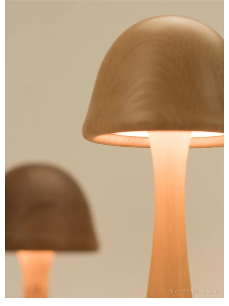 مصباح طاولة فطر لغرفة النوم ديكور خشبي لتزيين غرفة المعيشة وإضاءة
